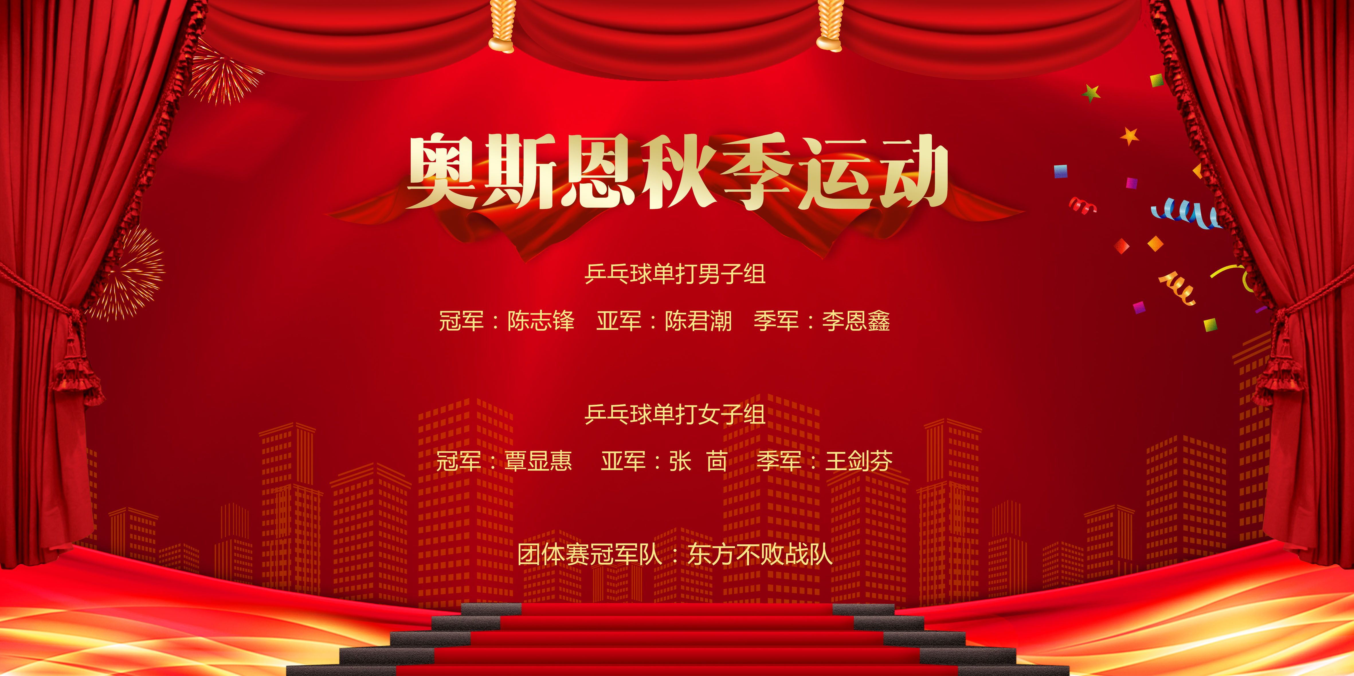11月20日,奧斯恩舉辦以“我運動、我快樂、我健康”為主題的趣味運動會,本次趣味運動會設立了“單人項目:男/女子乒乓球單打;團體項目:乒乓球男女混合雙打、拔河團隊賽、籃球團隊賽。