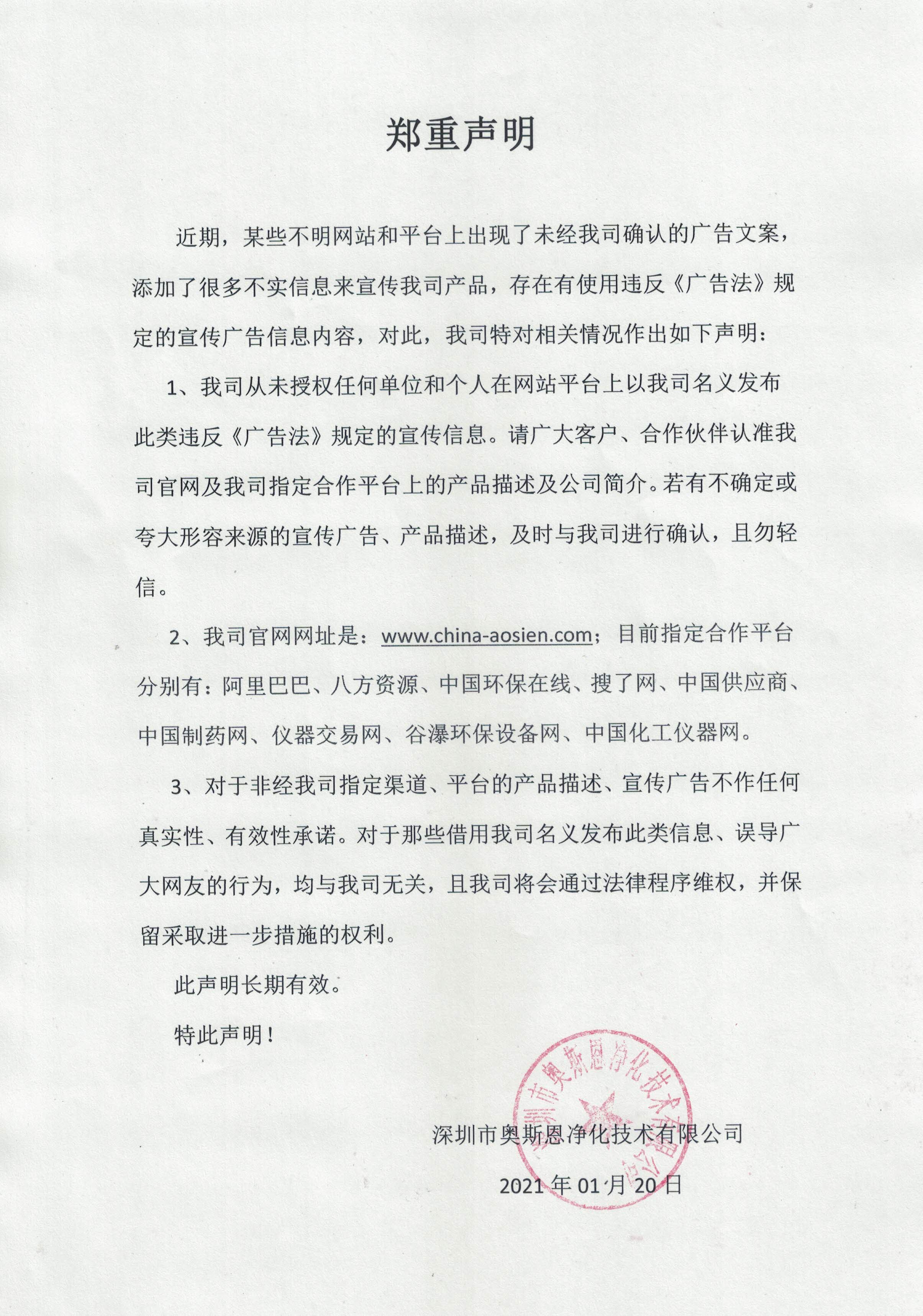 關(guān)于奧斯恩違反廣告法信息發(fā)布的聲明