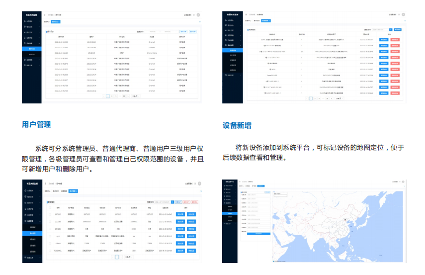 云平臺(tái)配備有PC端、手機(jī)端(安卓APP,微信公眾號(hào)、小程序),具有實(shí)時(shí)數(shù)據(jù)顯示、實(shí)時(shí)圖像顯示、歷史數(shù)據(jù)查詢及下載、污染日歷查看、報(bào)警信息查看等功能,客戶可通過(guò)我們平臺(tái)開放的API接口主動(dòng)獲取數(shù)據(jù),并預(yù)留 “市級(jí)”、“省級(jí)”監(jiān)管系統(tǒng)API接口程序,同時(shí)也支持對(duì)接第三方平臺(tái)。