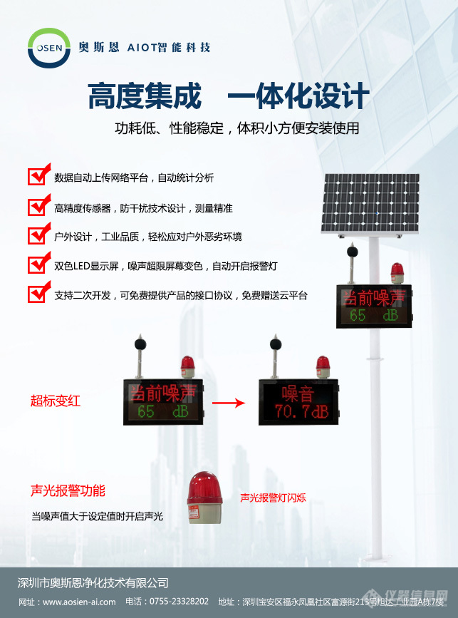 OSEN-Z06是奧斯恩噪聲監(jiān)測(cè)系列產(chǎn)品中用于常規(guī)環(huán)境下對(duì)實(shí)時(shí)噪聲進(jìn)行連續(xù)監(jiān)測(cè)的一款環(huán)境監(jiān)測(cè)設(shè)備。該系統(tǒng)主要由噪聲傳感器、數(shù)據(jù)采集儀、LED 顯示屏、傳輸模塊、防護(hù)機(jī)箱立桿及軟件應(yīng)用平臺(tái)等部分組成,設(shè)備精度高,監(jiān)測(cè)范圍廣,性能穩(wěn)定,全天候連續(xù)監(jiān)測(cè)、無人值守、實(shí)時(shí)傳輸并保存,并分析噪聲污染的現(xiàn)狀及變化趨勢(shì),為噪聲污染的規(guī)劃管理和綜合整治提供基礎(chǔ)數(shù)據(jù)。