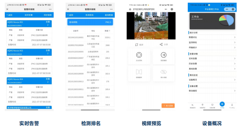 智能云數(shù)據(jù)分析軟件(包含有微信公眾號(hào)、微信小程序、APP),基于在線式環(huán)境監(jiān)測(cè)系統(tǒng),向客戶展示實(shí)時(shí)監(jiān)測(cè)數(shù)據(jù)、及最 近48小時(shí)歷史數(shù)據(jù)、最近30天日平均歷史數(shù)據(jù)、設(shè)備在線狀態(tài)并推送超標(biāo)報(bào)警信息,綜合分析管理數(shù)據(jù),可實(shí)現(xiàn)遠(yuǎn)程查看了解設(shè)備 所在區(qū)域的環(huán)境污染情況。為用戶提供 精準(zhǔn)穩(wěn)定、有保障的參考信息,及時(shí)有效地對(duì)轄區(qū)內(nèi)的大氣污染狀況進(jìn)行診斷。