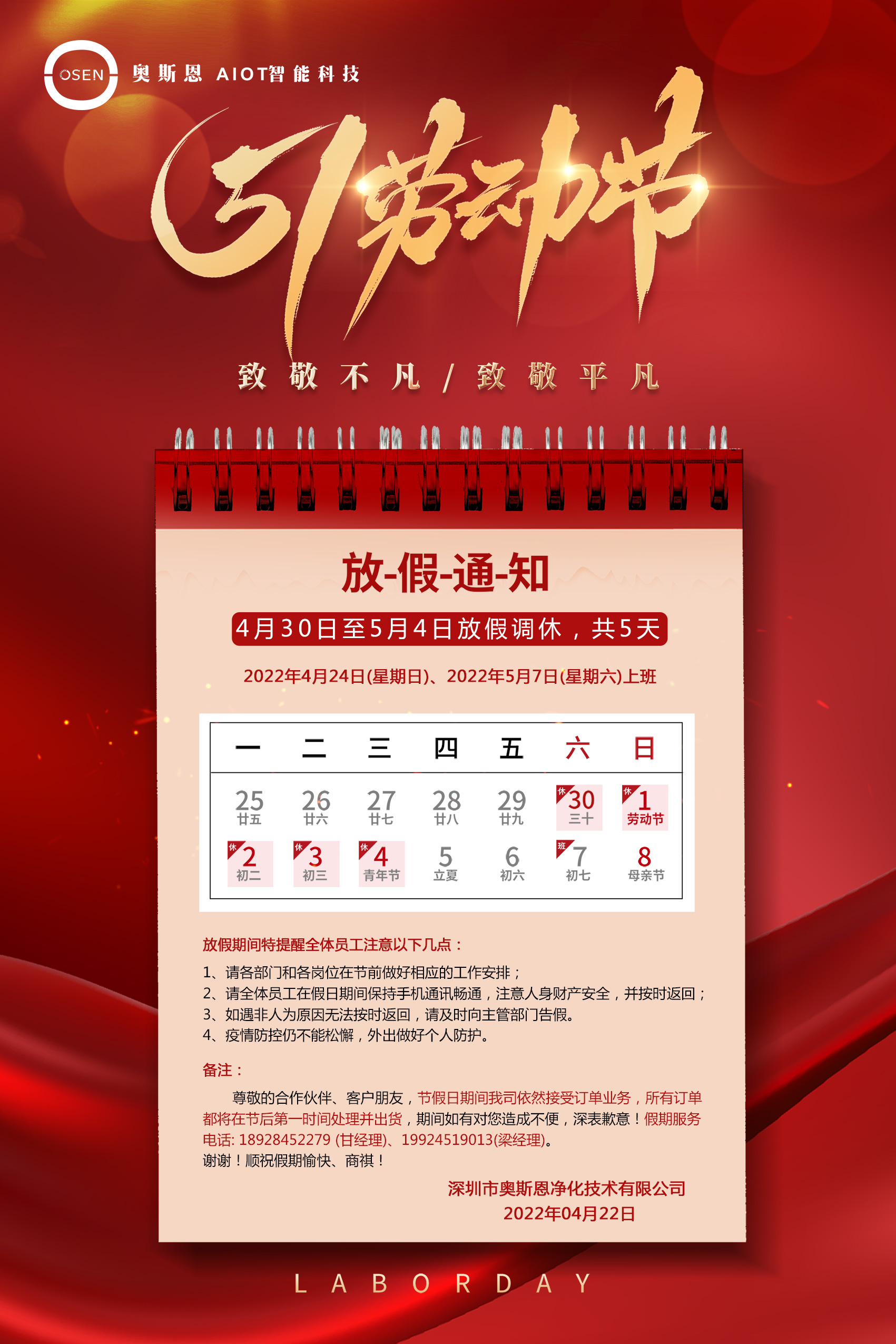 【放假通知】5.1“不打烊”,奧斯恩為您提供持續(xù)服務(wù)~