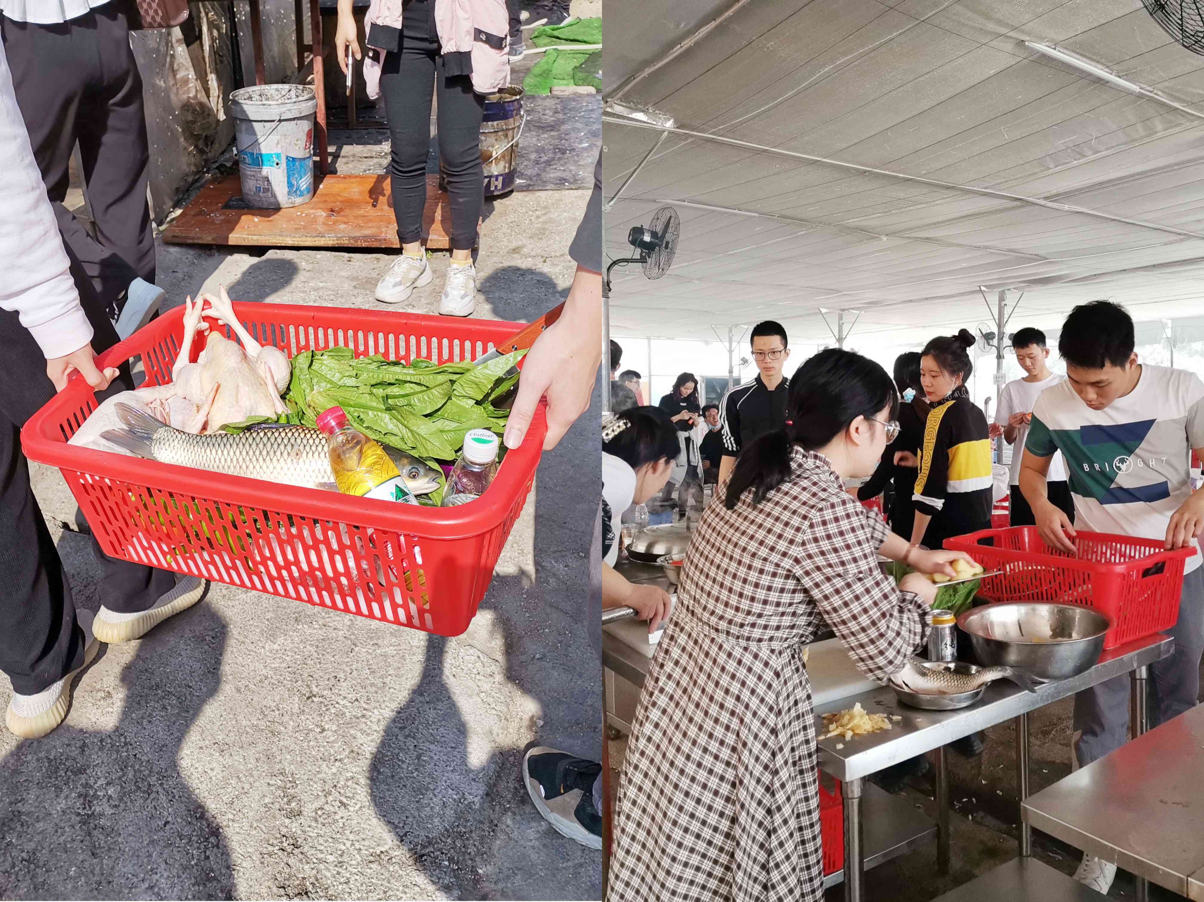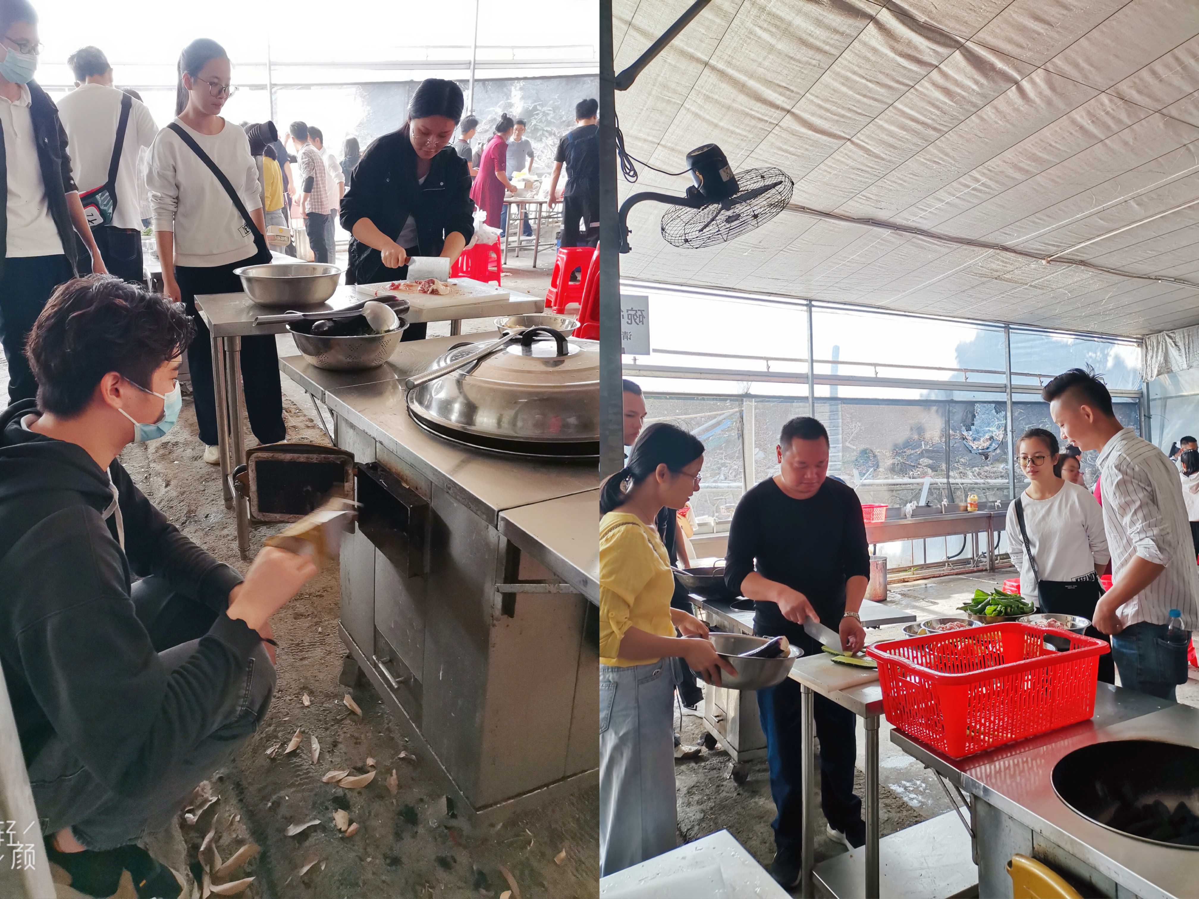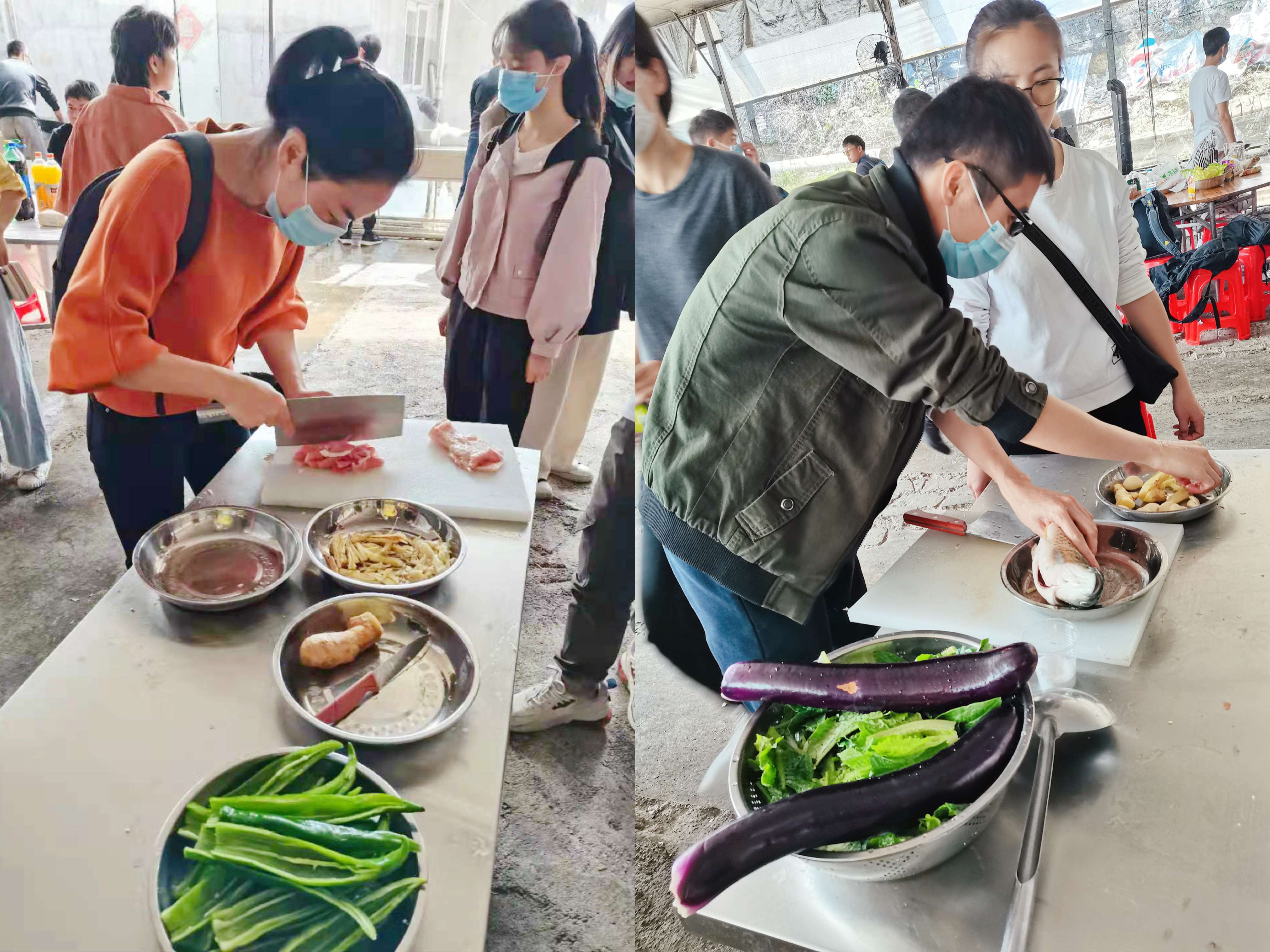 中午的《野炊大比拼》把氣氛再次掀起了高潮,《野炊大比拼》互動(dòng)廚藝,讓舌尖上的家鄉(xiāng)味在這里飄香。組隊(duì)分班、排兵布陣,人員共分成四個(gè)班,每個(gè)班選出一名炊事班班長(zhǎng)、由各班長(zhǎng)帶領(lǐng)各班人員進(jìn)行領(lǐng)取物資準(zhǔn)備廚藝展示!雖然做飯不是一樣容易的活,大家剛開始還是有點(diǎn)抵觸,但是現(xiàn)在大家把它當(dāng)成一個(gè)團(tuán)體項(xiàng)目 ,分工明確后,大家有條不紊的配合著,洗菜的洗菜,殺魚的殺魚,剁雞的剁雞、砍鴨的砍鴨、切肉的切肉、炒菜的炒菜、生火的生火,小伙伴們都在為了能早點(diǎn)吃到可口的飯菜而忙碌著.....