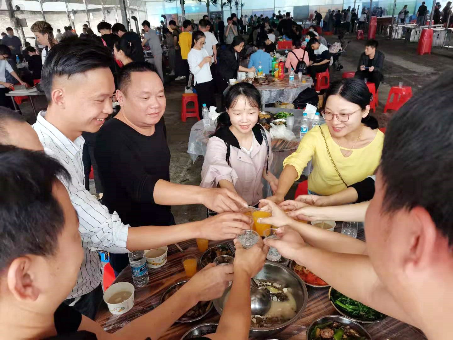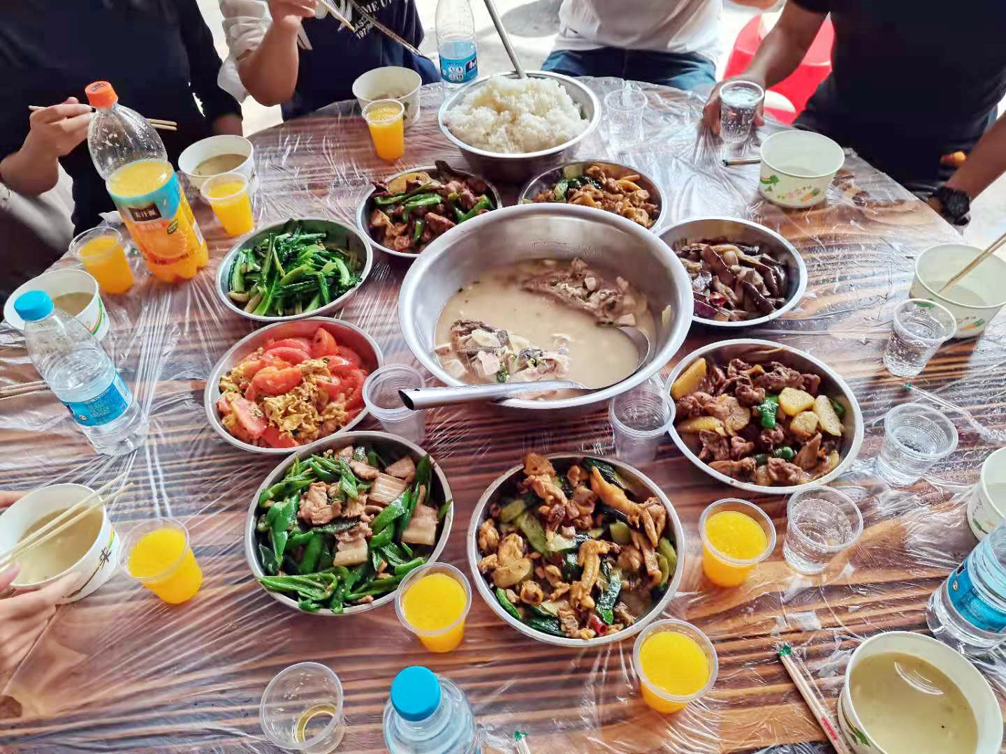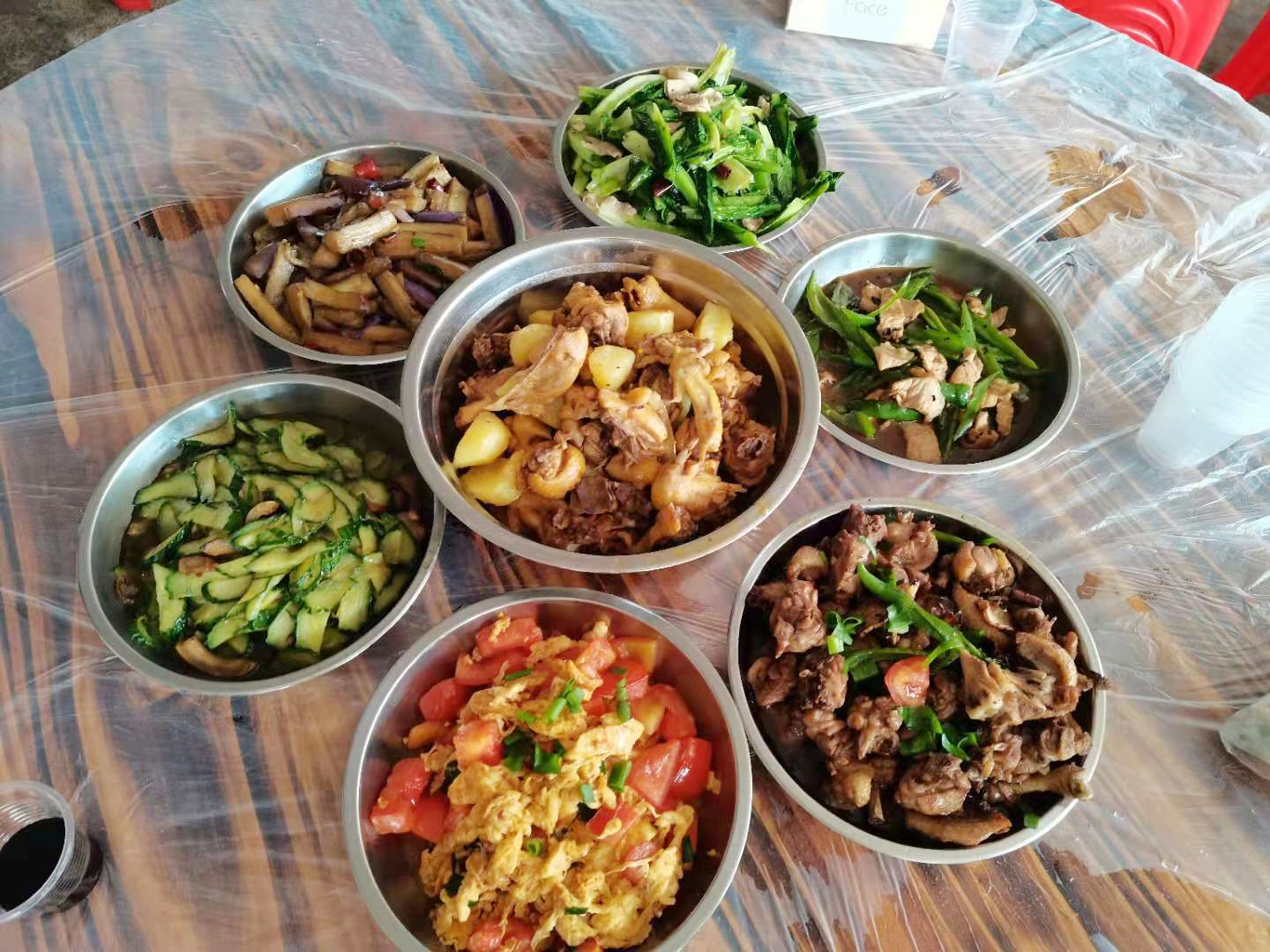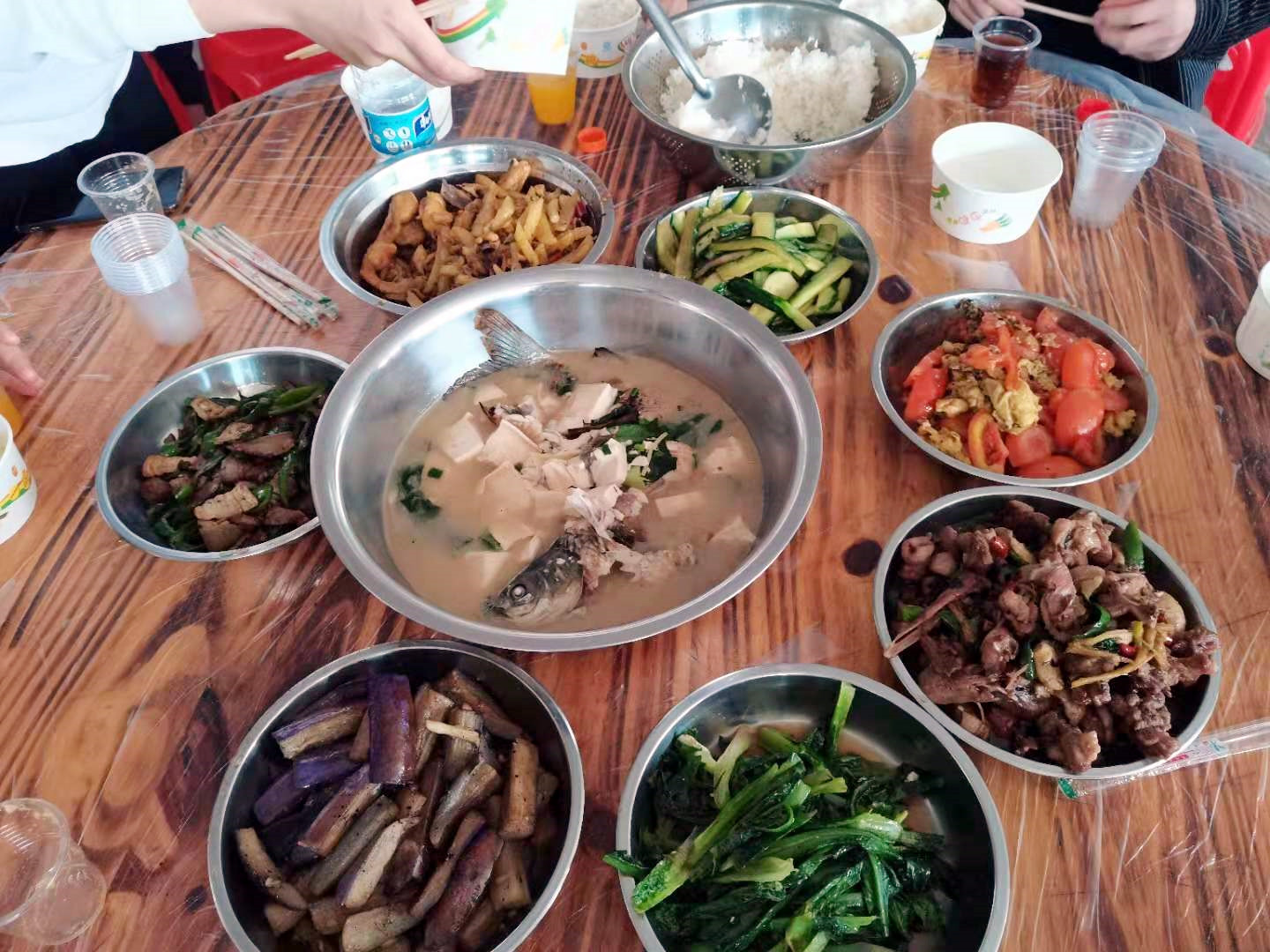 在炊煙裊裊中,經(jīng)過一個(gè)半小時(shí)的“奮戰(zhàn)”,一道道美味佳肴呈上“飯桌”香味四溢,令人垂涎三尺。大家先拍照留念,然后再一起舉杯,祝大家開心快樂,事事順利!