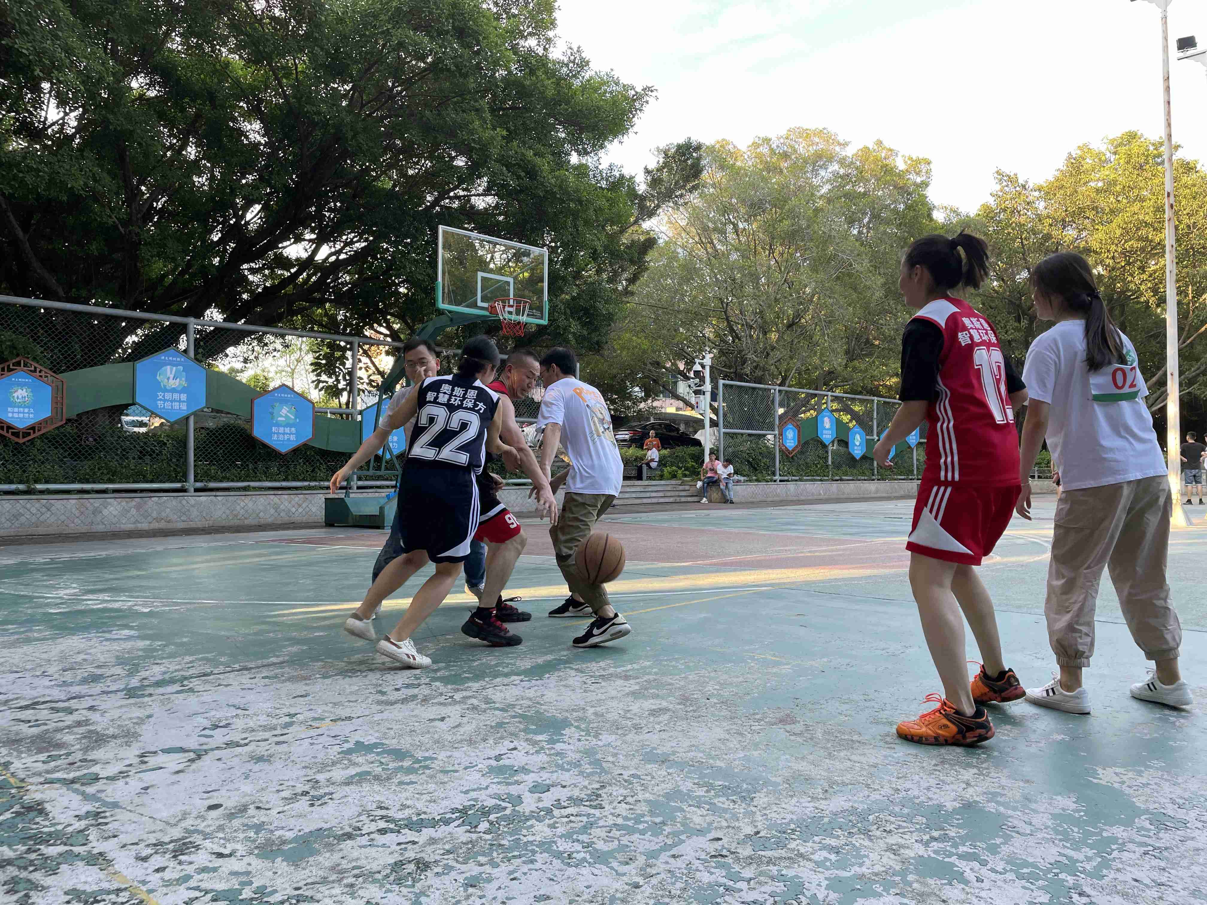 拔河比賽結束后大家稍作休息,緊接著又開始了當天的重頭戲-籃球比賽。本次籃球比賽增加了精彩的解說環(huán)節(jié),原本就已激烈精彩的比賽,在解說員的形色解說下又增添了幾分趣意,笑點滿滿,把臺下的觀眾也逗得捧腹大笑。