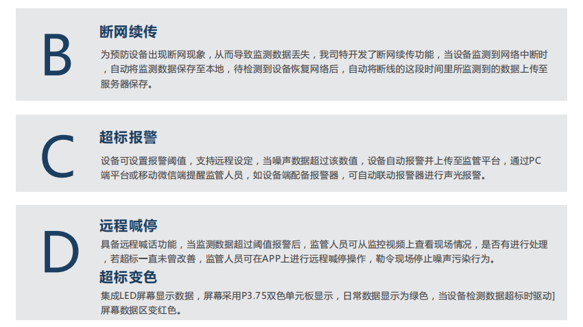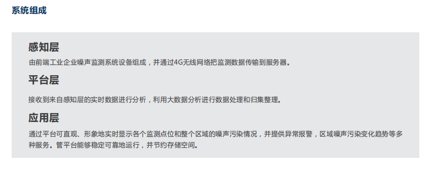 奧斯恩OSEN-Z通過物聯(lián)網(wǎng)技術(shù)與現(xiàn)場端儀器儀表進行互聯(lián)互通,完成對環(huán)境噪聲數(shù)據(jù)實時采集,并對采集數(shù)據(jù)統(tǒng)計分析,計算噪聲值,是一種簡易型的戶外噪聲自動監(jiān)測系統(tǒng),它由數(shù)據(jù)顯示大屏、噪聲傳感器、數(shù)據(jù)采集統(tǒng)計分析軟件、GPRS無線傳輸模塊、服務(wù)器云平臺軟件、微信客戶端等部分組成。噪聲計測量范圍大、功能強穩(wěn)定性好、可實現(xiàn)遠程視頻監(jiān)控、遠程廣播喊話等功能。廣泛應(yīng)用于建筑施工噪聲監(jiān)測。