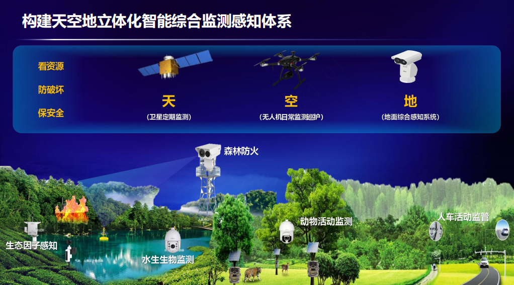 (1)多系統(tǒng)整合全面監(jiān)測:整合衛(wèi)星遙感、無人機、視頻監(jiān)控、人工巡護、物聯(lián)感知等豐富手段,構(gòu)建全天候、立體化的生態(tài)保護感知監(jiān)測網(wǎng)絡(luò)。