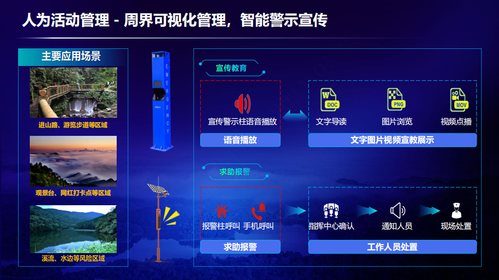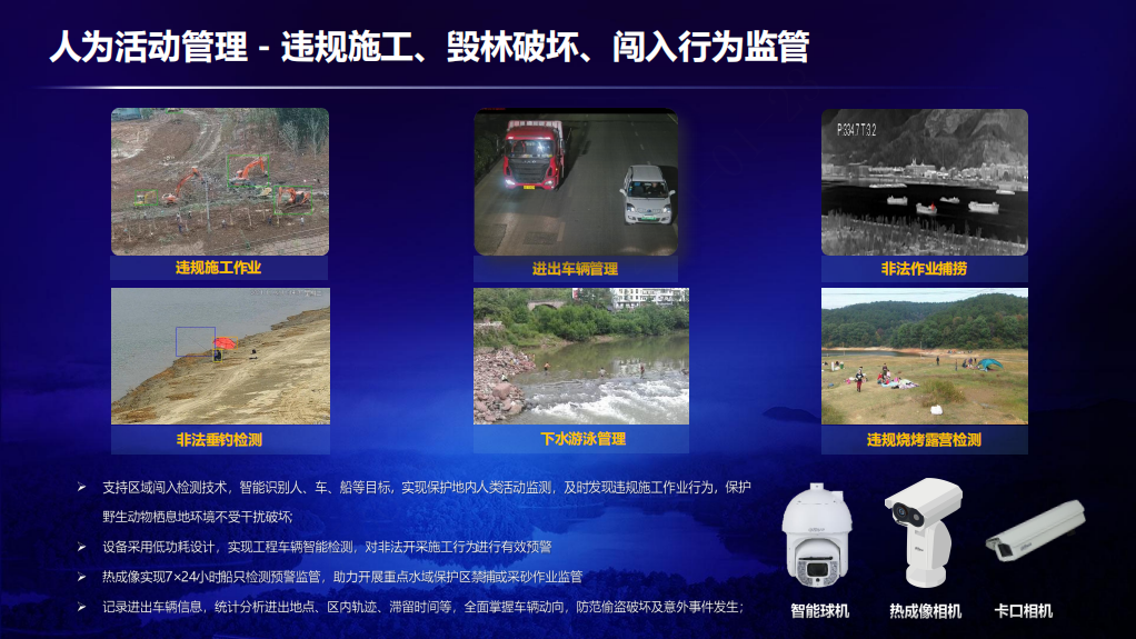 (2)全業(yè)務(wù)融合高效應(yīng)用:融合動物監(jiān)測識別、林草防火監(jiān)測、人為活動監(jiān)管、科普宣教等功能,實現(xiàn)信息資源全面整合、可視化管理,為管理人員提供實時全面的信息數(shù)據(jù)和高效便捷的管理工具專業(yè)場景化應(yīng)用適配充分考慮保護區(qū)野外場景,實現(xiàn)網(wǎng)絡(luò)、供電、安裝、維護的實施便利性,運行穩(wěn)定性,維護輕量化、管理人性化;